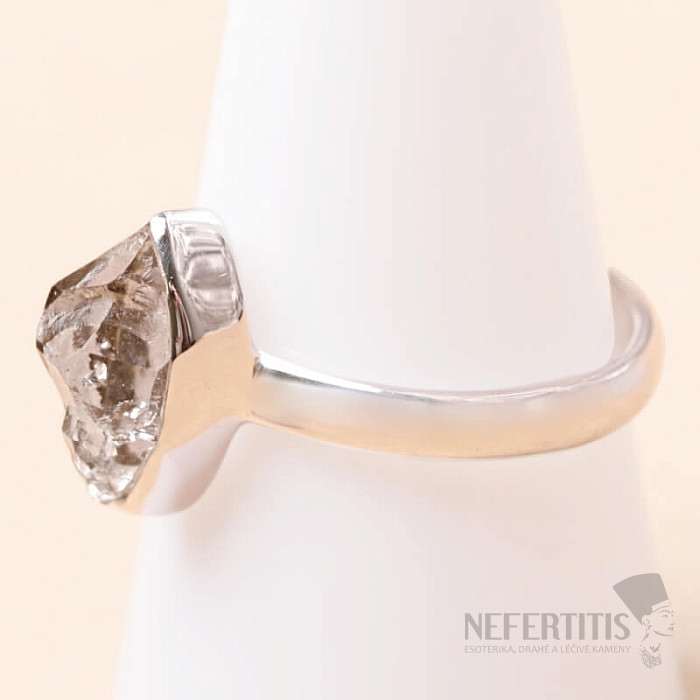 Nádherný prsten se vzácným křišťálovým herkimer "diamantem" ve stříbře. Velikost kamene cca 1,1 cm. Ag 925. Kupujete přímo vyobrazený šperk.