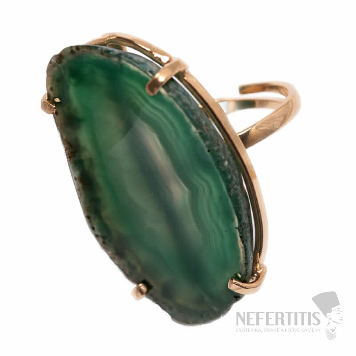 Achát v tomto prstenu je dobarvený, aby vynikla jeho struktura.