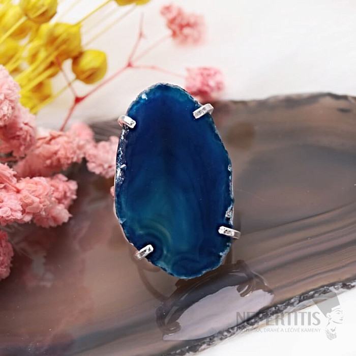 Achát v tomto prstenu je dobarvený, aby vynikla jeho struktura.