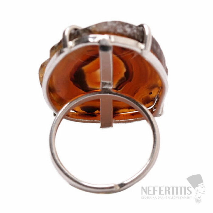Achát v tomto prstenu je dobarvený, aby vynikla jeho struktura.