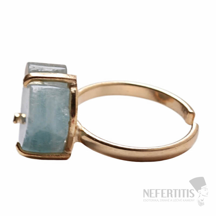 Objevte kouzlo elegance s tímto pozlaceným prstenem s akvamarínem. Akvamarín je kamenem mořské hloubky a čistého nebe. Každý kámen je originál. Akvamarín je znám jako kámen odvahy, klidu a pravdivé komunikace. Uklidňuje mysl, pomáhá zbavit se strachu a podporuje vyjadřování vnitřních pocitů s laskavostí a jistotou. Je oblíbeným talismanem pro ty, kdo hledají harmonii mezi srdcem a hlasem. Materiál: přírodní kámen, pozlacená mosaz. Kupujete přímo vyobrazený šperk.