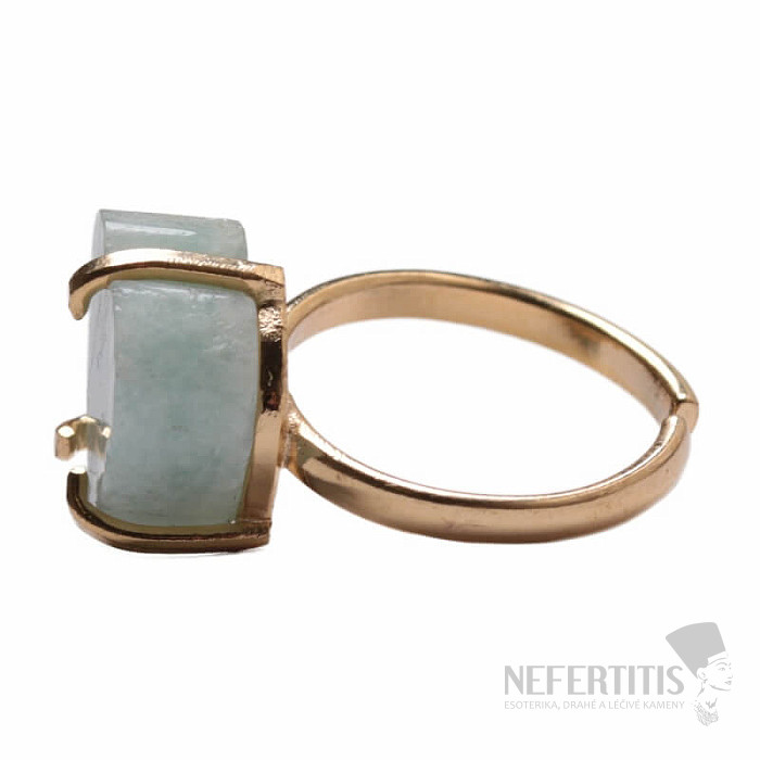 Objevte kouzlo elegance s tímto pozlaceným prstenem s akvamarínem. Akvamarín je kamenem mořské hloubky a čistého nebe. Každý kámen je originál. Akvamarín je znám jako kámen odvahy, klidu a pravdivé komunikace. Uklidňuje mysl, pomáhá zbavit se strachu a podporuje vyjadřování vnitřních pocitů s laskavostí a jistotou. Je oblíbeným talismanem pro ty, kdo hledají harmonii mezi srdcem a hlasem. Materiál: přírodní kámen, pozlacená mosaz. Kupujete přímo vyobrazený šperk.