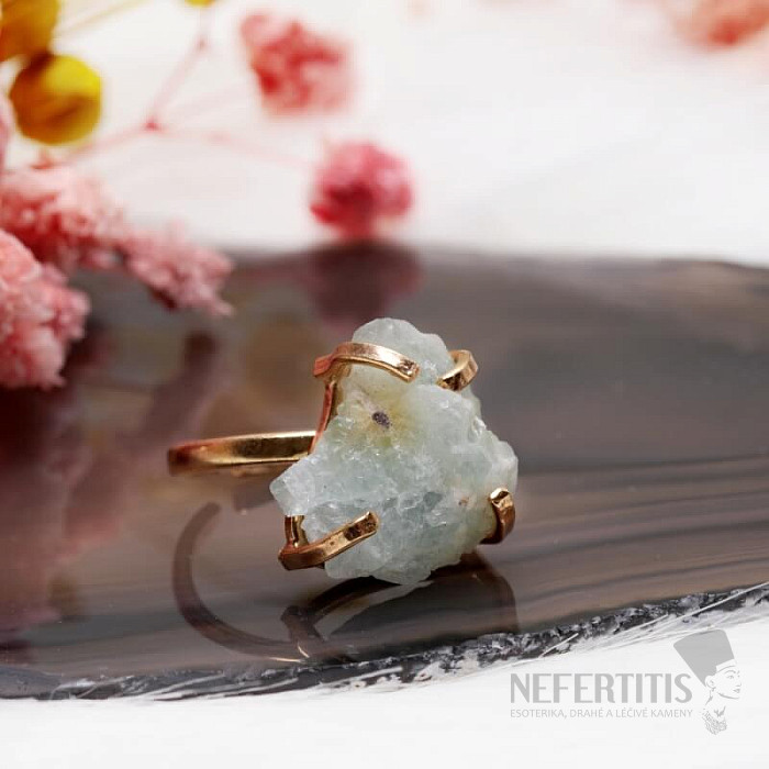 Objevte kouzlo elegance s tímto pozlaceným prstenem s akvamarínem. Akvamarín je kamenem mořské hloubky a čistého nebe. Každý kámen je originál. Akvamarín je znám jako kámen odvahy, klidu a pravdivé komunikace. Uklidňuje mysl, pomáhá zbavit se strachu a podporuje vyjadřování vnitřních pocitů s laskavostí a jistotou. Je oblíbeným talismanem pro ty, kdo hledají harmonii mezi srdcem a hlasem. Materiál: přírodní kámen, pozlacená mosaz. Kupujete přímo vyobrazený šperk.