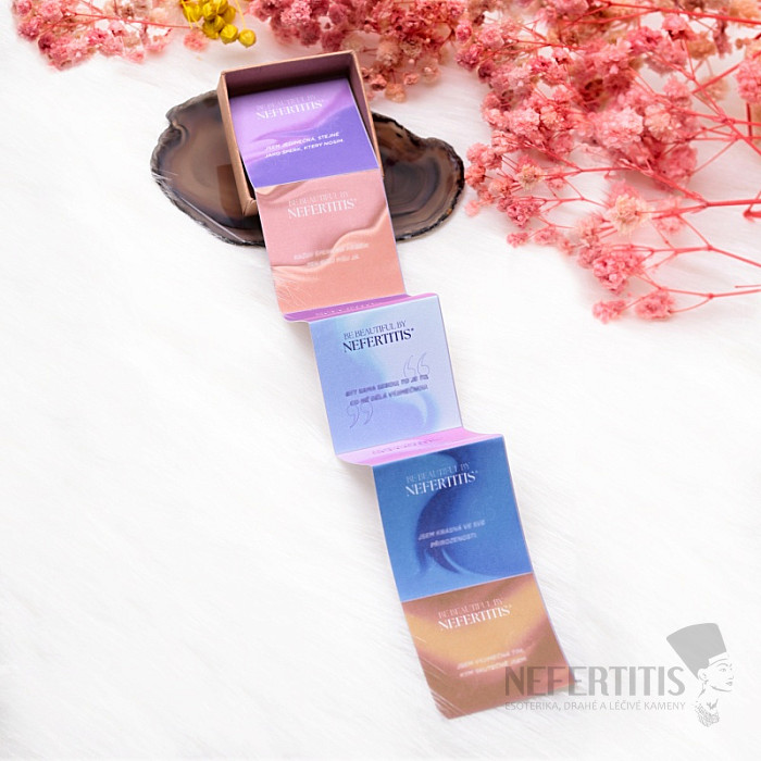 Prsten je uložen do craftové krabičky z přírodního materiálu, která skvěle dopňuje prsten z přírodního kamene. K prstenu od nás obdržíte sadu 7 afirmací – na každý den v týdnu jednu – které jemně posílí vaši jedinečnost, výjimečnost a víru v sebe sama. Jsou to malé připomínky toho, kým opravdu jste.