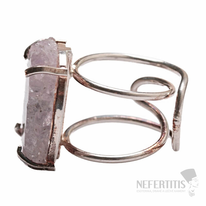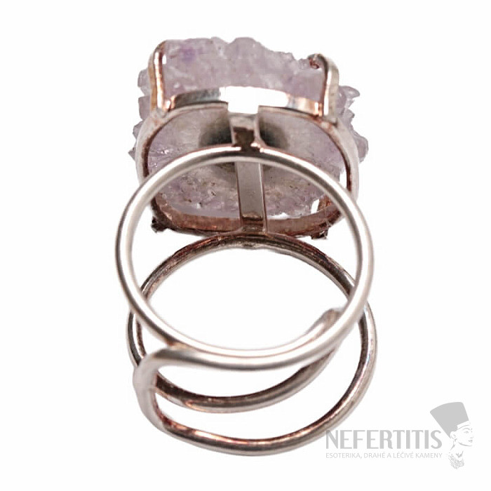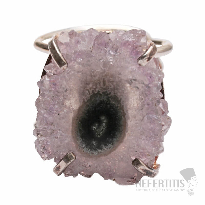 Objevte kouzlo elegance s tímto postříbřeným prstenem, jehož dominantou je řez krápníkem - stalaktitem ametystu. Každý kámen je originál. Ametyst je kamenem lásky, vášně a porozumění. Materiál: přírodní kámen, postříbřená mosaz. Kupujete přímo vyobrazený prsten.