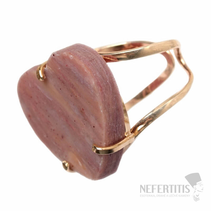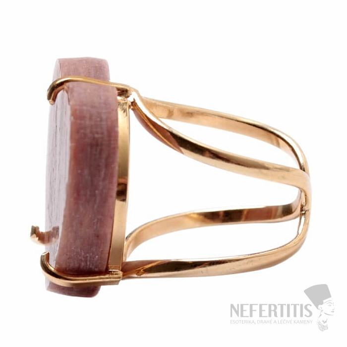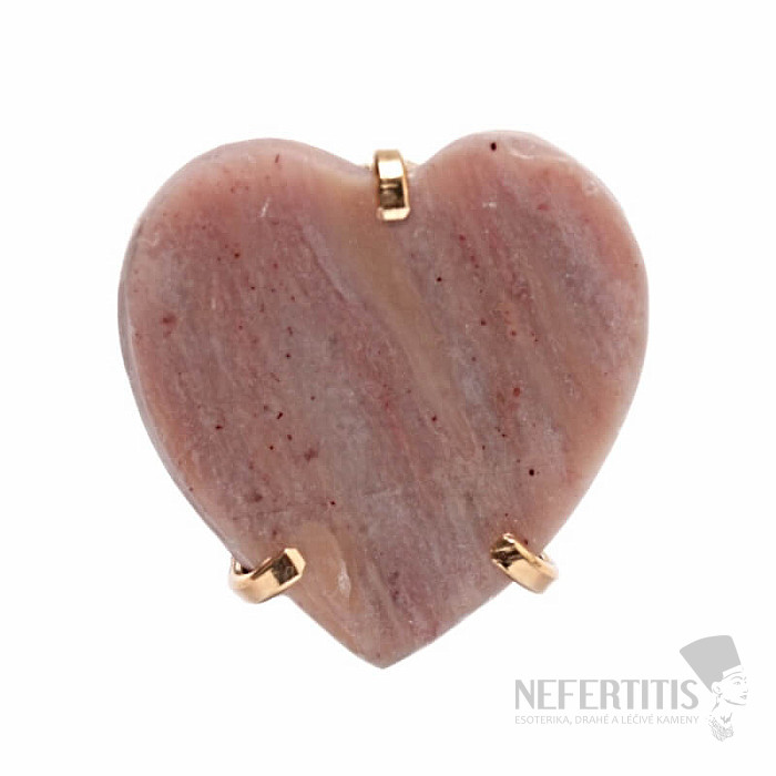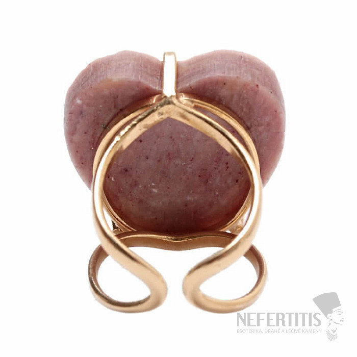 Objevte kouzlo něžné elegance s tímto pozlaceným prstenem, jehož dominantou je velký jahodový křišťál ve tvaru srdce. Každý kámen je originál. Vyznačuje se jemnými růžovými tóny a přírodními inkluzemi. Srdce symbolizuje lásku, radost, štěstí a křišťál podněcuje sebelásku, jemnost, harmonii a vnitřní klid. Materiál: přírodní kámen, pozlacená mosaz. Kupujete přímo vyobrazený prsten.