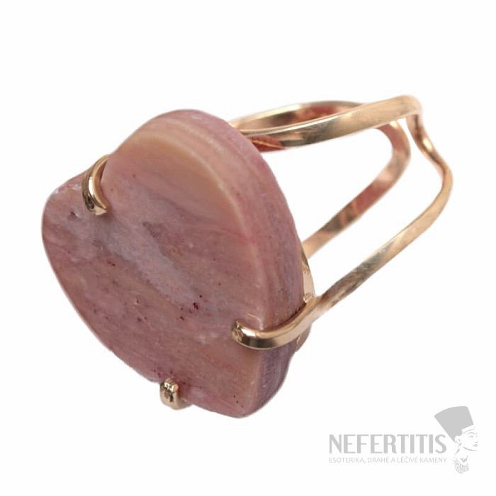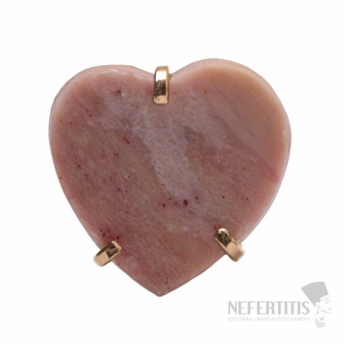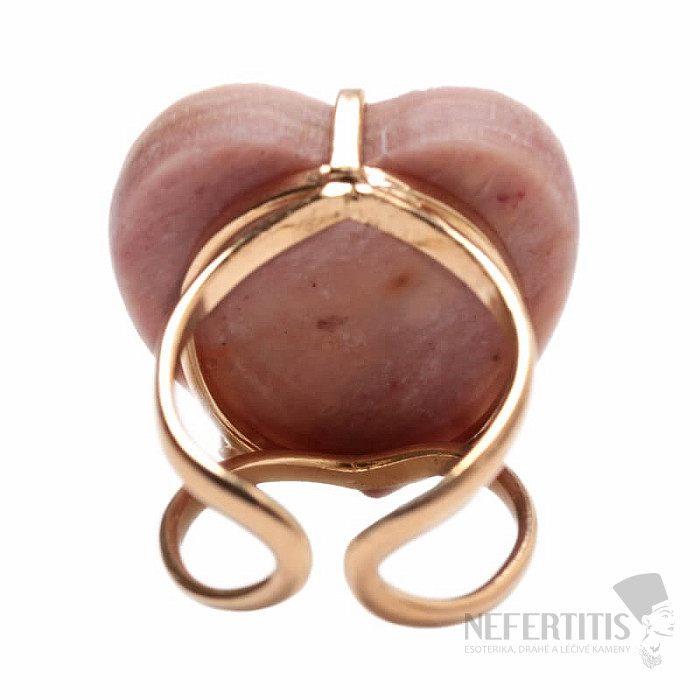 Objevte kouzlo něžné elegance s tímto pozlaceným prstenem, jehož dominantou je velký jahodový křišťál ve tvaru srdce. Každý kámen je originál. Vyznačuje se jemnými růžovými tóny a přírodními inkluzemi. Srdce symbolizuje lásku, radost, štěstí a křišťál podněcuje sebelásku, jemnost, harmonii a vnitřní klid. Materiál: přírodní kámen, pozlacená mosaz. Kupujete přímo vyobrazený prsten.