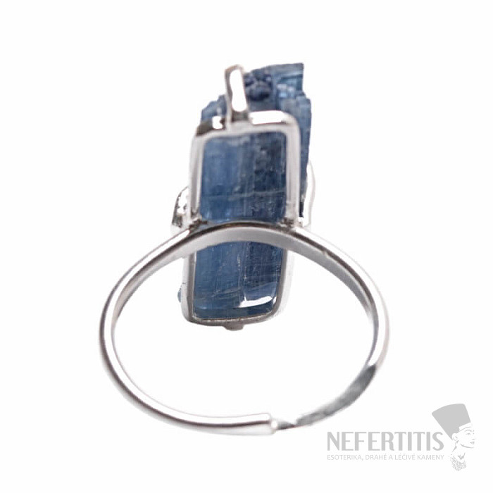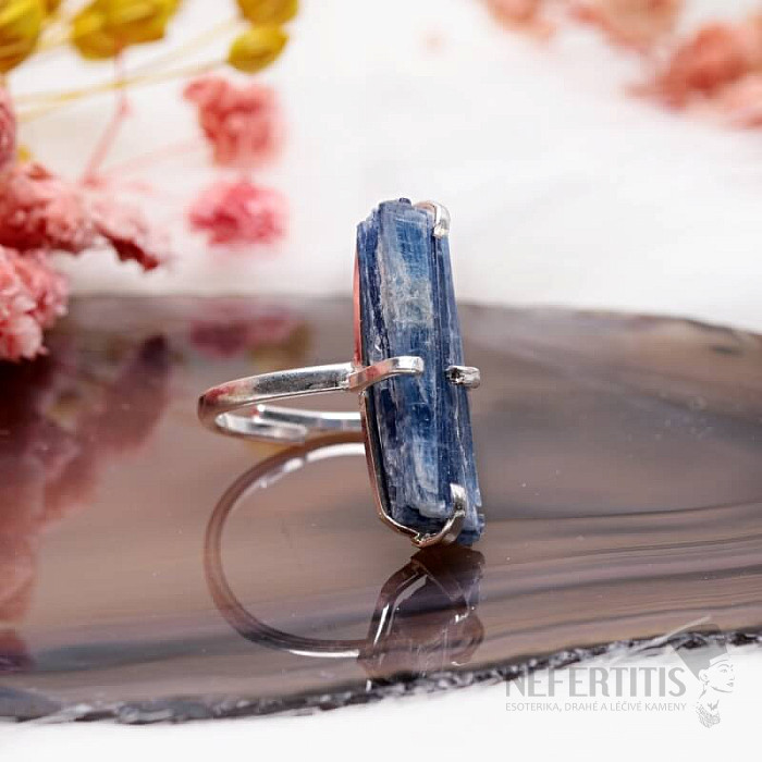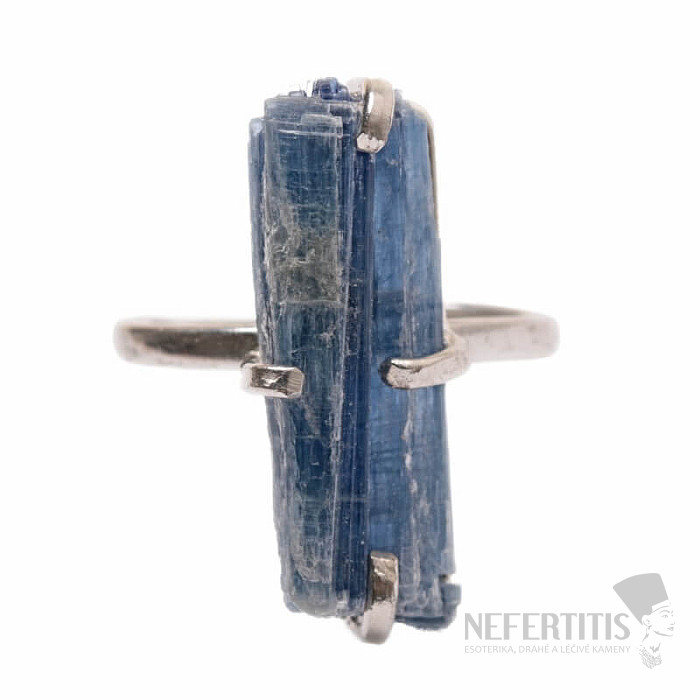 Objevte kouzlo elegance s tímto postříbřeným prstenem, jehož dominantou je surový modrý kyanit. Každý kámen je originál. Kyanit je kámen, který v sobě nese klid hluboké vody, je znám jako kámen vnitřní rovnováhy, komunikace a duševní čistoty. Materiál: přírodní kámen, postříbřená mosaz. Kupujete přímo vyobrazený prsten.