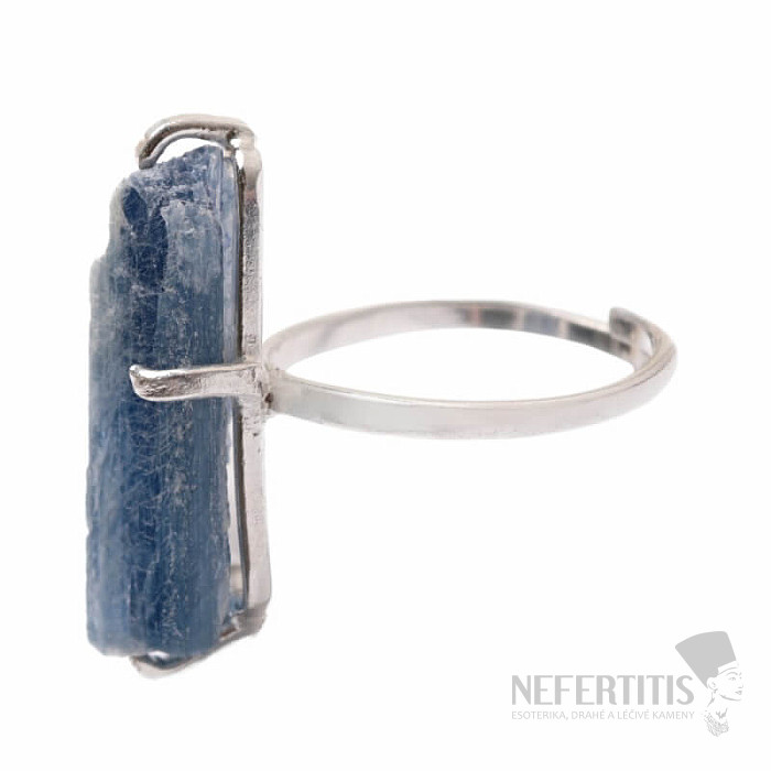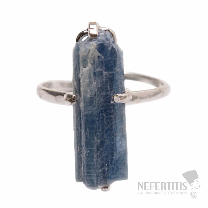 Objevte kouzlo elegance s tímto postříbřeným prstenem, jehož dominantou je surový modrý kyanit. Každý kámen je originál. Kyanit je kámen, který v sobě nese klid hluboké vody, je znám jako kámen vnitřní rovnováhy, komunikace a duševní čistoty. Materiál: přírodní kámen, postříbřená mosaz. Kupujete přímo vyobrazený prsten.