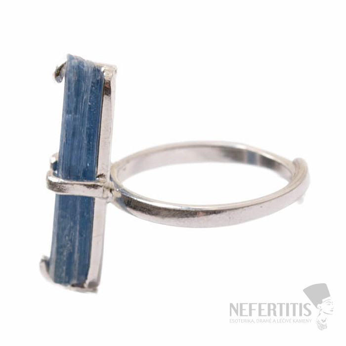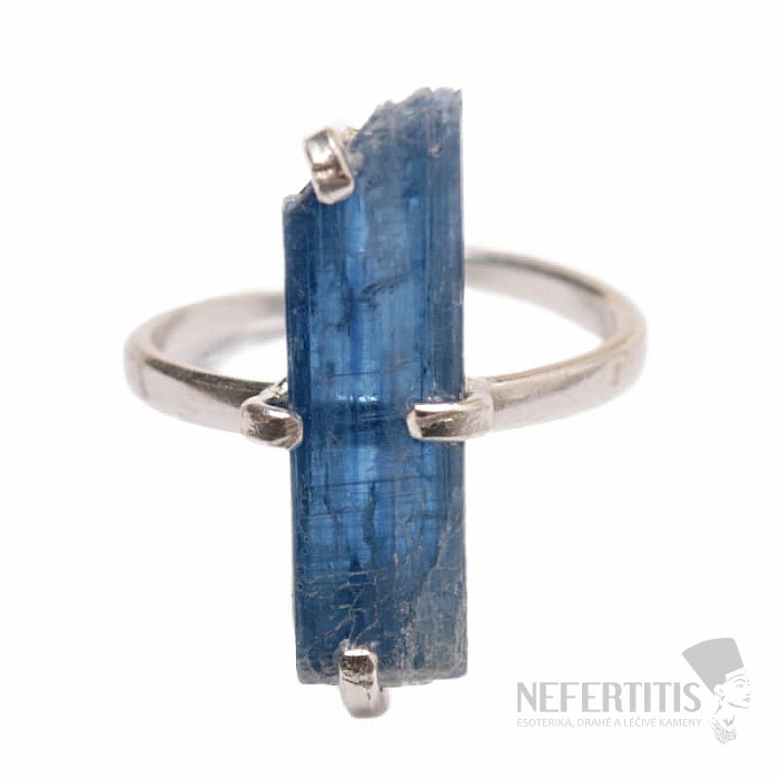 Objevte kouzlo elegance s tímto postříbřeným prstenem, jehož dominantou je surový modrý kyanit. Každý kámen je originál. Kyanit je kámen, který v sobě nese klid hluboké vody, je znám jako kámen vnitřní rovnováhy, komunikace a duševní čistoty. Materiál: přírodní kámen, postříbřená mosaz. Kupujete přímo vyobrazený prsten.