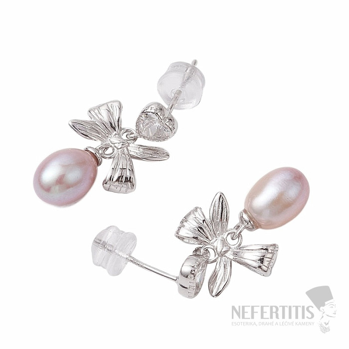 Stříbrné náušnice Mašle s perlou