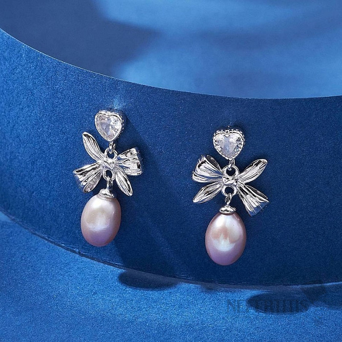 Tyto stříbrné náušnice s perlou a jemnou mašlí působí romanticky, elegantně a zároveň hravě. Jsou vyrobeny ze stříbra ryzosti 925/1000 a zdobí je výrazná přírodní perla o velikosti cca 1,3 cm, která dodává šperku nadčasovou krásu.