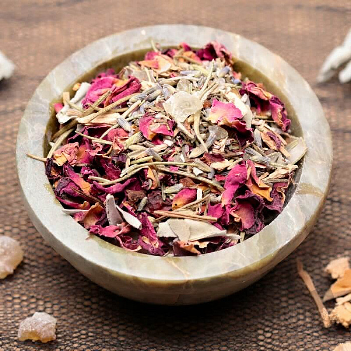 Návod k použití: malé množství směsi nasypejte na rozžhavený rychlozápalný uhlík a nechte směs doutnat až do úplného vyhoření. Pro uchycení uhlíku doporučujeme speciální kleštičky Používejte nejlépe nádobky, určené k těmto účelům, jako jsou kadidelnice popř. přírodní ploché mušle nebo kovové misky. Směs můžete spalovat i ve vykuřovacích píckách nebo pomocí aroma lampy. Nikdy nenechávejte směs bez dozoru během hoření. Skladujte v suchu, chladu a mimo dosah dětí.