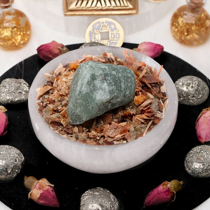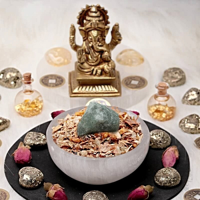 Váš sáček s vykuřovadlem ukrývá zelený avanturín - kámen prosperity, štěstí, odvahy a hojnosti, který posiluje záměr směsi a přináší do života klid a prosperitu. Avanturín svou jemnou zelenou energií harmonizuje srdeční čakru, zklidňuje emoce a pomáhá udržet klid i při rozhodování o penězích či práci.