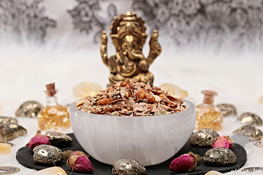 Jeho přítomnost ve směsi není jen symbolická – posiluje záměr hojnosti a vděčnosti, který je s touto vykuřovací směsí spojen. Otevírá srdce radosti, důvěře a přijímání. Podporuje pozitivní přístup, odvahu zkoušet nové věci a přitahuje příznivé okolnosti ve finanční i osobní rovině.