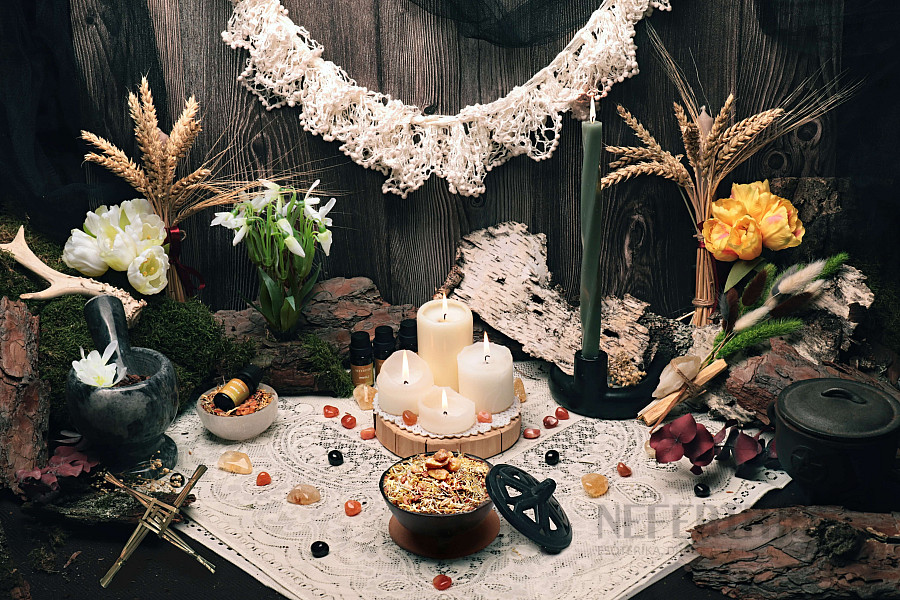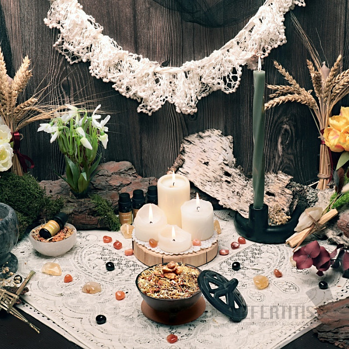 Nefertitis vykuřovací směs Imbolc - oslava světla, naděje a nových začátků: oslavte návrat světla a přivítejte pozitivní energii do svých domovů. Těšte se na vše, co přijde s novým rokem. Na fotografiích vidíte oltář z roku 2025 a 2026.