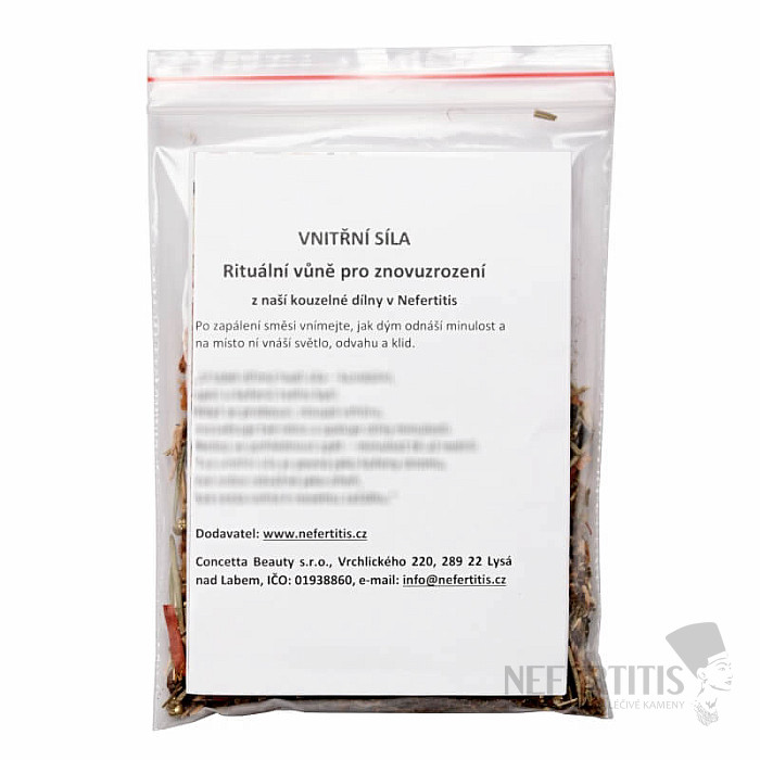 Unikátní vykuřovací směs Vnitřní síla - rituální vůně pro znovuzrození. Směs je určená k očistě, ochraně a probuzení energie kundaliní.