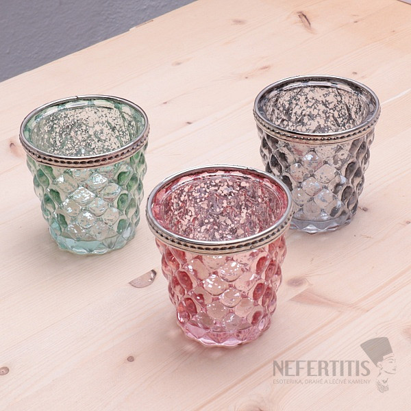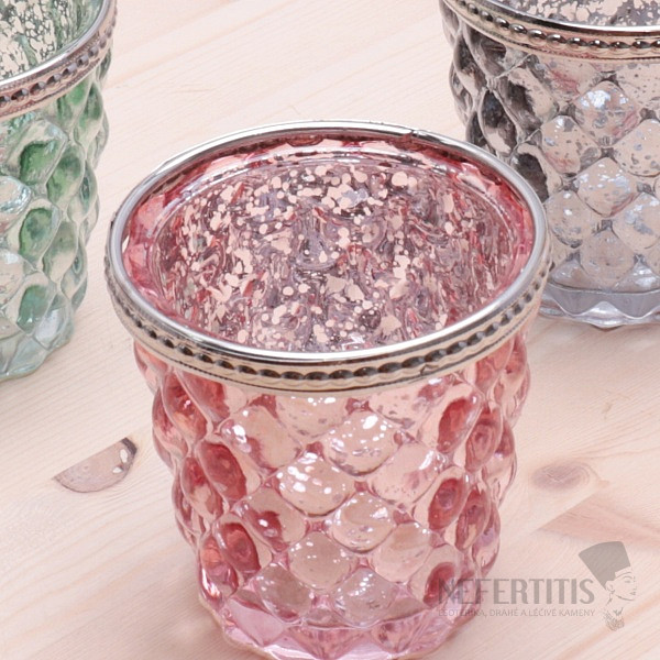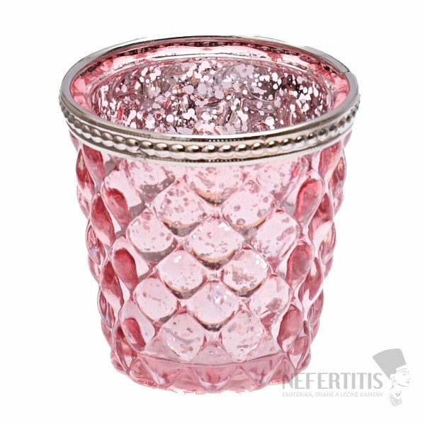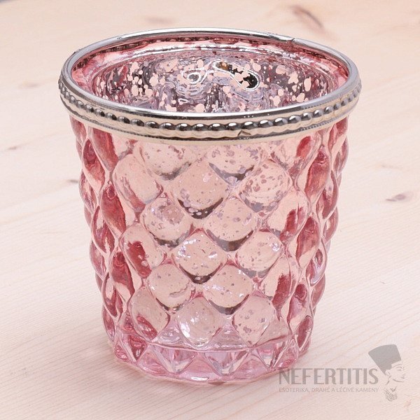 Svícen sklo na čajové a votivní svíčky Retro růžový